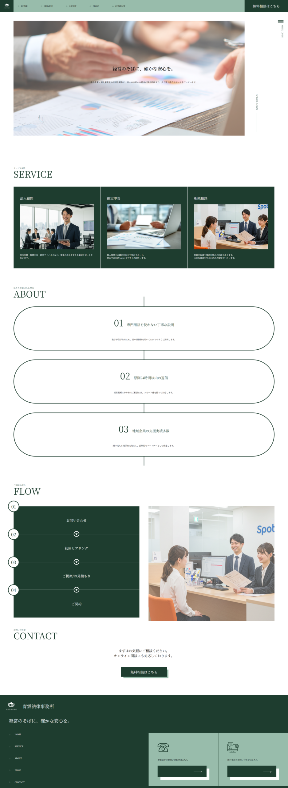 架空の税理士事務所"青雲法律事務所"のトップページ制作