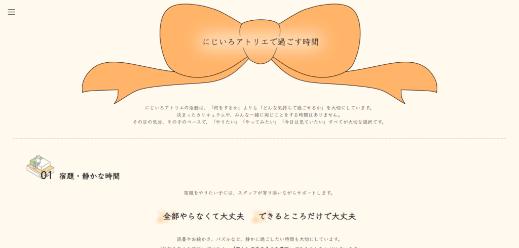 デザインと文章の画面から、親も子も、安心して一歩踏み出せるサイトになることを目指しました。