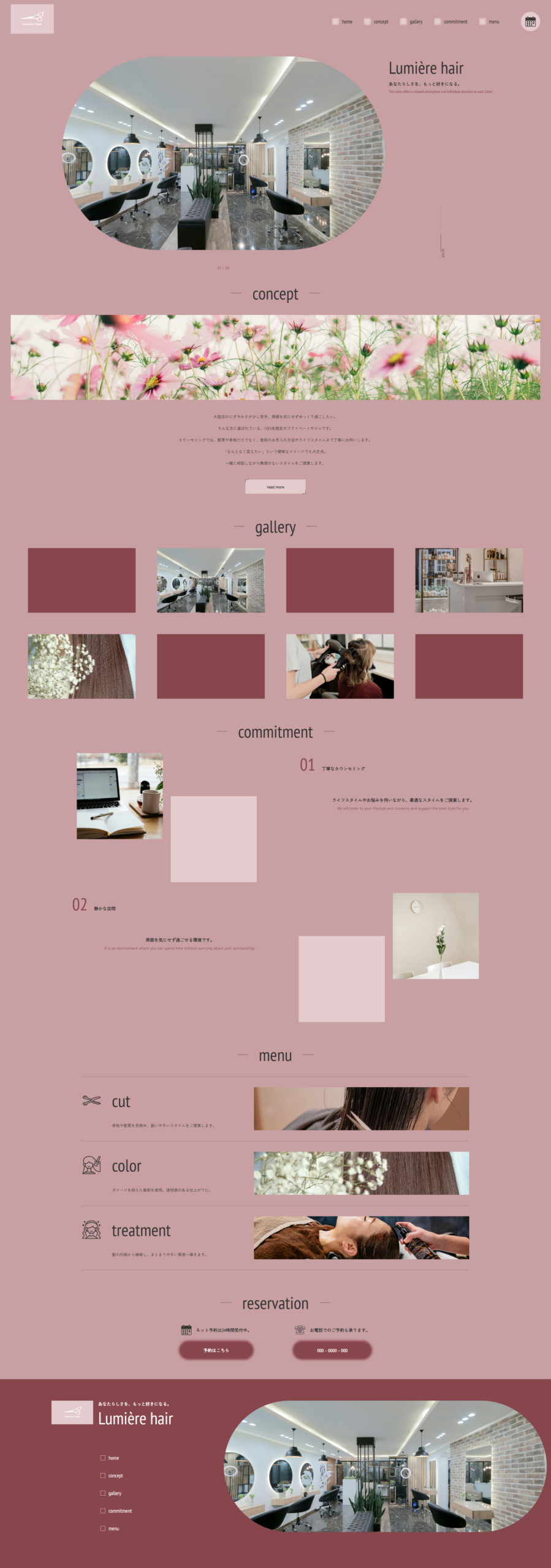 架空の美容院"Lumière hair"のトップページ制作